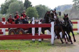 Am Wochenende um Fronleichnam ging es auf dem Hof Meyer zu Hartum mit dem Fahrsport weiter. Der Feiertag bot den Fahrern aus der Region Startmöglichkeiten, die gern genutzt wurden. Die Bünderin Viviana Farina Quandt gewann mit Cosma Shiva die A-Dressur, bei den Zweispännern stand Katja Kirstein (RV Sundern-Spexard) vorn. Ebenfalls auf A-Niveau steuerte Heiner Lehrter aus Ibbenbüren sein Pony Chabrier auf den ersten Platz, Sandra Roßbach aus Herbern gewann die Zweispänner-Prüfung.In der Klasse M ging es um die Kombinierte Wertung aus Dressur, Geländefahrt und Hindernisfahren. Hier erzielten „Lützower“ Fahrer schöne Erfolge: Rica Rethmeier gewann mit ihrem Erfolgspony Andiamo bei den Einspännern, mit Tita wurde sie Vierte. Fünfter wurde ihr Vereinskollege Daniel Müller. Bei den Pferde-Einspännern lag wiederum die Familie Rethmeier vor Familie Müller: Vater Rainer Rethmeier wurde Vierter in der Kombinierten Wertung, Onkel Friedrich-Wilhelm Fünfter.
