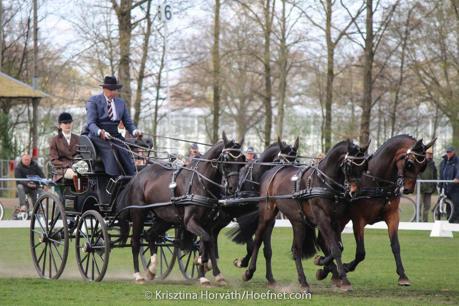 In de fraaie ringen van de Kasteelse Bossen in Horst aan de Maas reden vandaag alle rubrieken en de tweede helft van de tweespanmenners hun dressuurproef. Bij de tweespannen bleef de top ongewijzigd sinds gisteren, met Marco Freund aan de leiding en en Riny Rutjens als beste Nederlander. Bij de vierspan paarden gaat IJbrand Chardon aan de leiding.