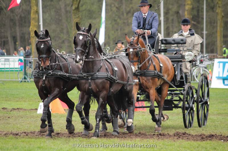 The team drivers were faced with a challenging obstacle course today. Georg von Stein (GER) was the only driver to set a double clear round winning the class. His teammates Rainer Duen and Christoph Sandmann were just behind with a few tenths of seconds in time faults. Ijsbrand Chardon had one ball, but this was enough to move him into first place after Boyd Exell struggled with a young horse and knocked up 10,01 penalty points upon crossing the finish line. The competition for the dutch national championship currently has Chardon in first, Koos de Ronde second and Theo Timmerman in third place.