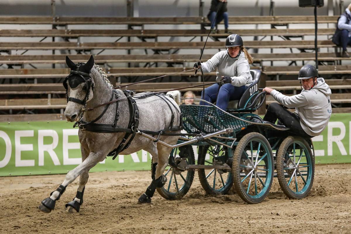 Ook bij de rubriek tweespan pony’s rolde menig balletje. Het maakte de strijd nog spannender want de gereden tijden lagen dichtbij elkaar. Het tweede parcours bracht de nodige klassementsverschuivingen teweeg. Lang stond Ischa Vink aan de leiding, tot hij een plekje moest opschuiven door de geweldig tweede rit van Frans Marijnissen. Raymon Leliveld was 10e in het eerste parcours, maar won het tweede parcours en plaatste zich als derde voor de finale. Tot het laatste moment bleef het spannend wie zich in de top tien reden en daarmee een finaleplaats pakten. Zo was Cas Hendriks 15e in de eerste ronde. Hij startte als laatste deelnemer in de tweede omloop en maakte het nog superspannend door een balletje af te rijden, maar plaatste zich nipt voor de finale. Dat ging ten koste van Dexter Biersteker die door een mindere eerste omloop uiteindelijk 11e werd en daarmee buiten de finale viel.