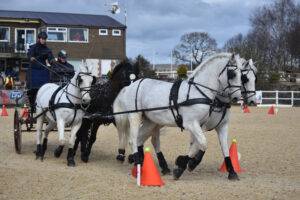 An innovative driving trials competition hosted by The David Broome Event Centre at Cricklands (5 – 6 March) proved a huge success with competitors who travelled from far and wide to take part. The format, based on British Carriagedriving rules with dressage judged to FEI standard, saw all three phases take place in a surfaced arena with dressage, in a 100m x 40m arena, taking place on the Saturday.On Sunday morning competitors took part in the cones competition, laid out to BC National rules, and in the afternoon a ‘Combined Marathon’ featuring a course of two obstacles and ten cones driven once against the clock. Organiser James Broome explained: “We put this competition on as a pre-season training event particularly for those looking to compete abroad prior to the National season. Dressage was judged to FEI standard using National tests in order to give competitors a taste of International conditions.