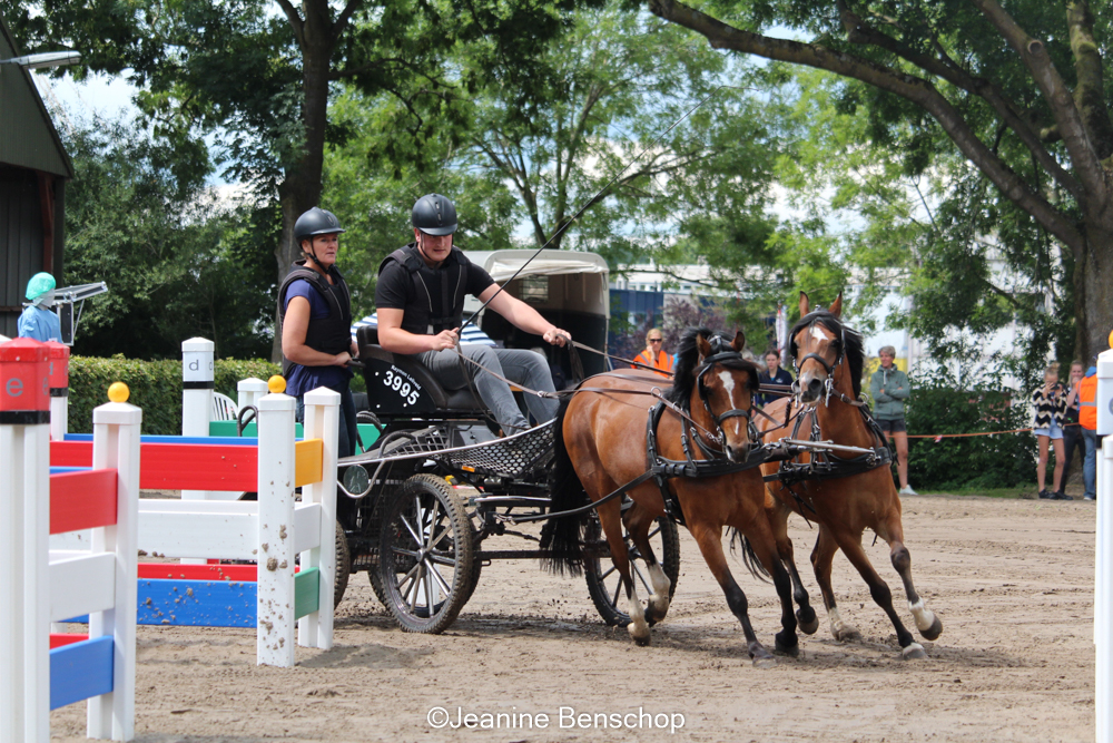 Raymon is een veelzijdig menner want hij heeft ook enkelspan gereden met de Fries Yfke en vierspan met de pony’s van zijn opa.