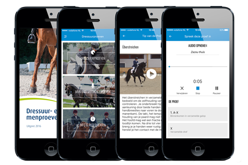 Met deze app hebben ruiters en menners ook de mogelijkheid om hun proef op het tempo van het paard te kunnen inspreken, zodat zij daarna zelfstandig kunnen oefenen.
