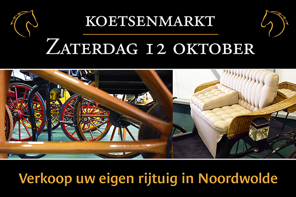 Na de succesvolle verkoopdag in augustus van Rijtuigenhuis Lyma worden de laatste koetsen en rijtuigen uit de collectie op 12 oktober voor ‘geld en pepermunt' aangeboden in het Friese Noordwolde.Op deze ‘restanten’-koetsenmarkt worden ook tuigage en curiosa, zoals schilderijen, beelden en lectuur aangeboden. Daarnaast is er een unieke mogelijkheid om je eigen rijtuig te koop aan te bieden of een verkoopkraam te huren voor tuigage en/of paardensportartikelen.