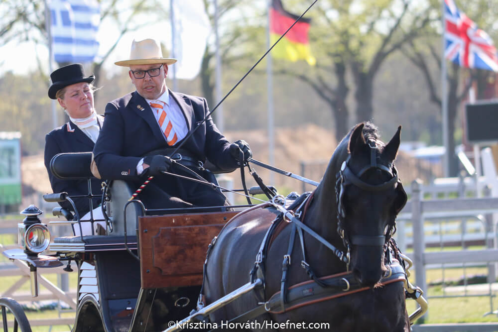 Mark Weusthof was de beste Nederlander in de marathon bij de vierspannen, hij hoefde alleen Boyd Exell voor zich te dulden. In het tussenklassement zijn Ijsbrand en Bram van plaats gewisseld. Koos de Ronde was met zeer snelle tijden goed op weg om de marathon te winnen, een van zijn grooms verliet in hindernis 4 echter onvrijwllig het voertuig.