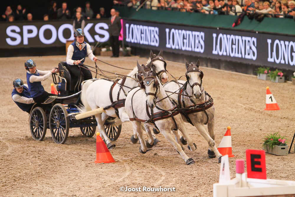 Bram Chardon maakte vandaag in zijn voorspan gebruik van de Lipizzaner Conversano XXIV 3 2I in plaats van de bonte Casper waarmee hij op vrijdag tweede werd: “Ik heb dit paard al eerder dit seizoen gebruikt in Lyon en Boedapest, hij is net wat sneller dan Casper. Mijn plan is om hem ook in Bordeaux te gebruiken dus vandaar dat ik er bewust voor heb gekozen om hem vandaag in te zetten. Ik kon in de tweede helft van de tweede omloop merken dat hij iets conditie miste. Ik raakte wat druk kwijt, waardoor ik een paar seconden verloor. Ik blijf deze opstelling doortrainen, ik heb hoge verwachtingen van dit span. Ik probeer steeds dichter bij Boyd te komen, het moet een keer lukken dat ik hem voor kan blijven!”