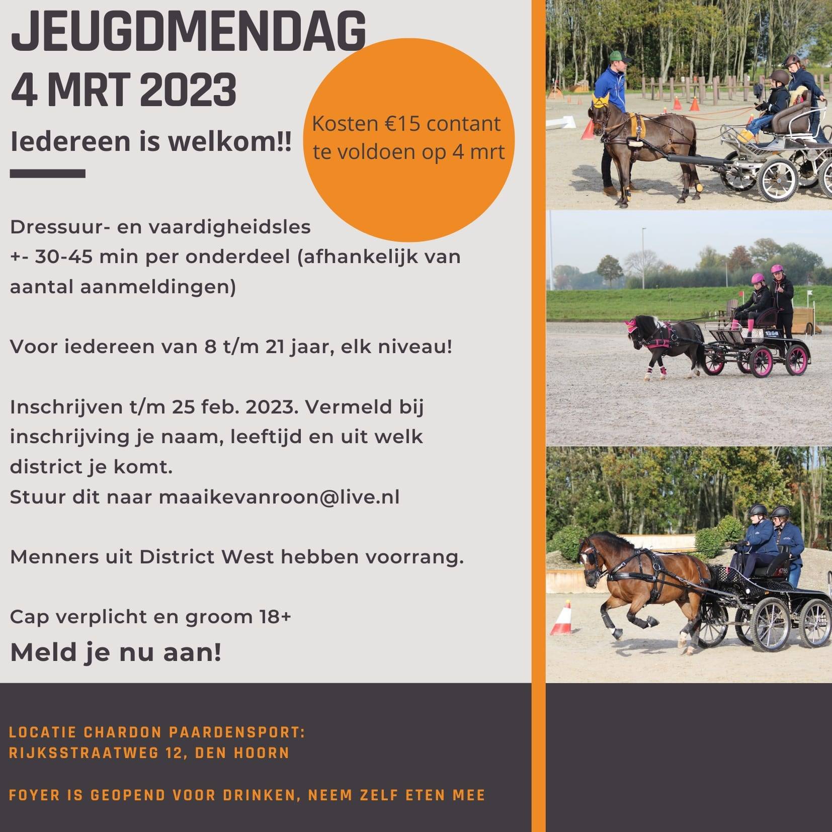 Op 4 maart wordt er in samenwerking met Mendistrict West een trainingsdag voor de jeugd georganiseerd op het mooie complex van de familie Chardon in Den Hoorn.
