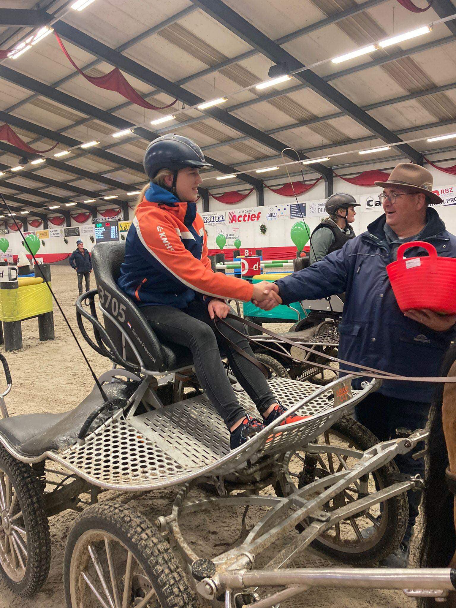 De Zeeuwsche Menvereniging organiseerde afgelopen vrijdag en zaterdag hun eerste indoor marathon van het seizoen 2023-2024. Er was veel belangstelling om in de mooie accommodatie in Nieuw en Sint Joosland deel te nemen aan de wedstrijd. In totaal kwamen er zo´n 90 deelnemers uit Nederland, België en Frankrijk aan de start. Er waren veel ervaren aanspanningen, maar er was ook ruimte voor nieuwe deelnemers en minder ervaren paarden en pony's.De wedstrijd ging vrijdag om 16.30 uur van start met de eerste voorrondes. Dat ging zaterdag tijdens het dagprogramma verder. De besten kwamen op zaterdagavond opnieuw aan start in de finales waar de prijzen werden verdeeld. Maar voor de jeugdmenners waren de eerste omlopen gelijk beslissend voor de eindrangschikking. De strijd tussen de vijf aanspanningen was spannend, want de nummers 1 en 2 eindigden binnen één seconde van elkaar. Noéemie Ghesquiere was net een fractie sneller dan Hannelore Timmerman en won.