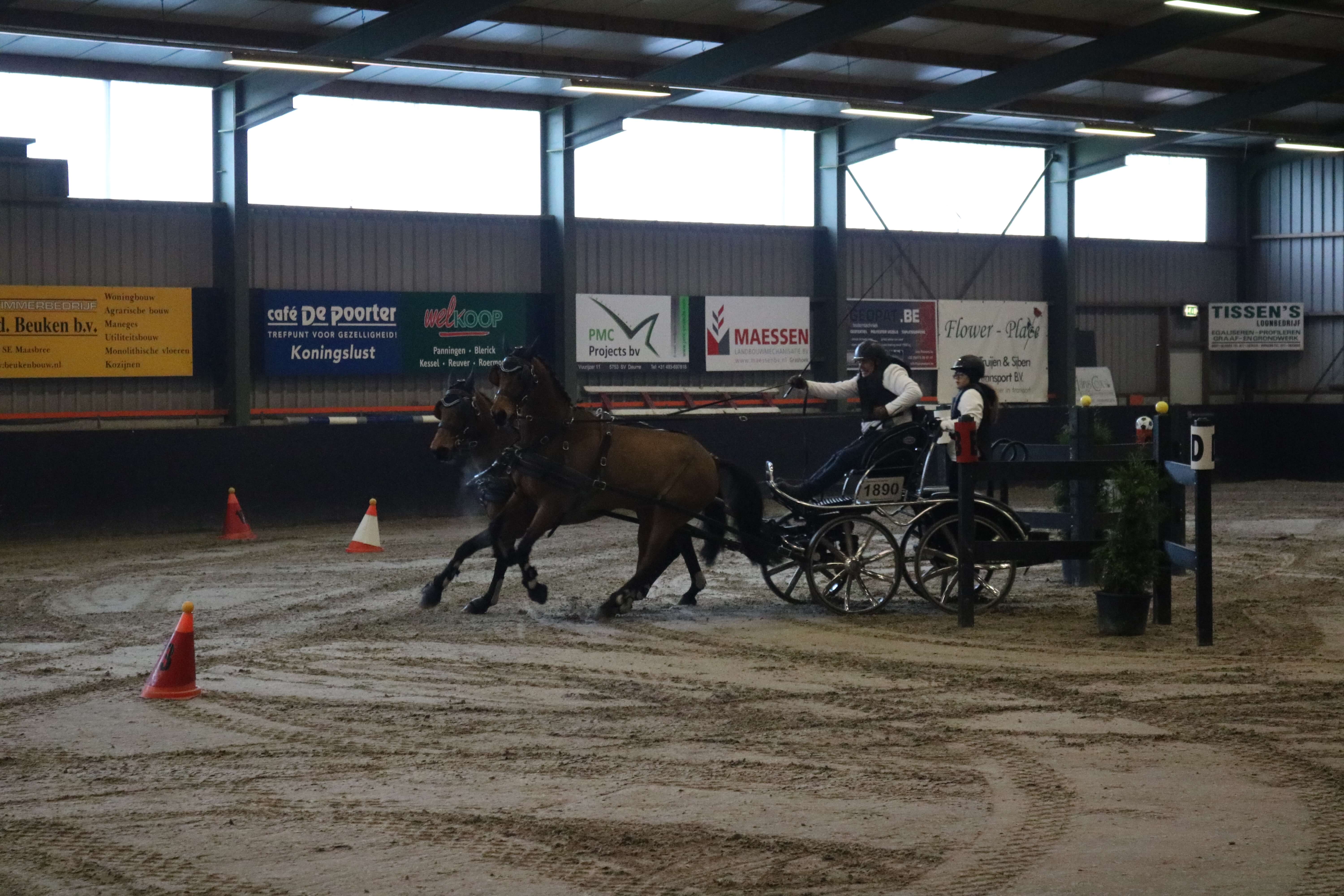 Bij de tweespan pony’s was Marleen van Straaten over twee manches de snelste. In de finale moest zij respectievelijk Frans Marijnissen -die een supersnelle tijd neerzette-, Mandy van Delft en Nick Gaens voor laten gaan.