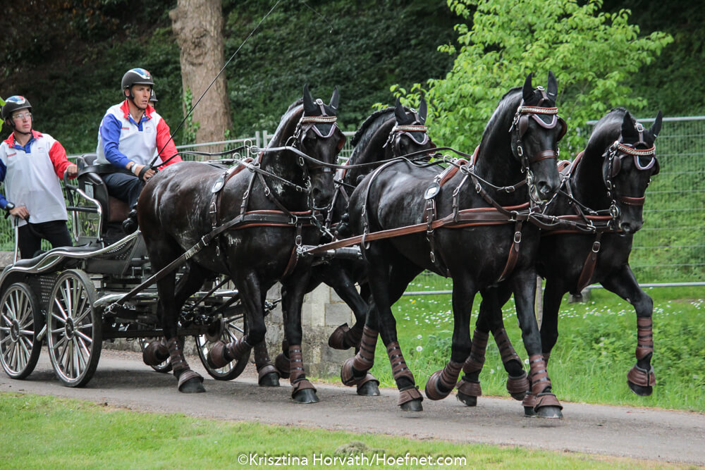 Benjamin Aillaud won de dressuur met het prachtige span Arabo Friezen van de Nederlandse eigenaren Eric en Arjan Bouwman van Haras de Pourcaud, werd derde in de marathon en hield het hoofd koel in de vaardigheid, wat hem de overwinning opleverde. Jérome Voutaz werd tweede, voor Jozsef Dobrovitz jr.