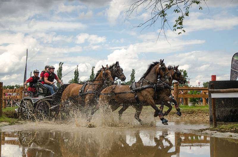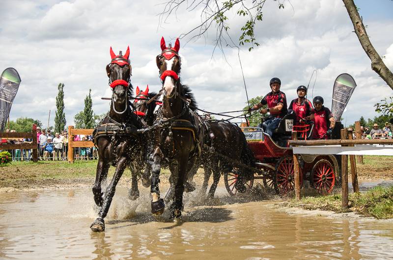 Only two four-in-hand drivers managed to drive a double clear round in the course, designed by Johan Jacobs. First starter Bram Chardon showed his skills and left the arena thrilled with his faultless round. None of the 30 drivers who followed him managed to do the same until Jérôme Voutaz entered the arena. The Swiss cones specialist secured his second place in the standings by putting down the second clear round of the day. Leader after the marathon Michael Brauchle could afford some penalty points and won just ahead of Voutaz. József Dobrovitz finished third, ahead of the strong performing French drivers Thibault Coudry and Benjamon Aillaud, who competed with the Arabo Friesian horses for the first time.