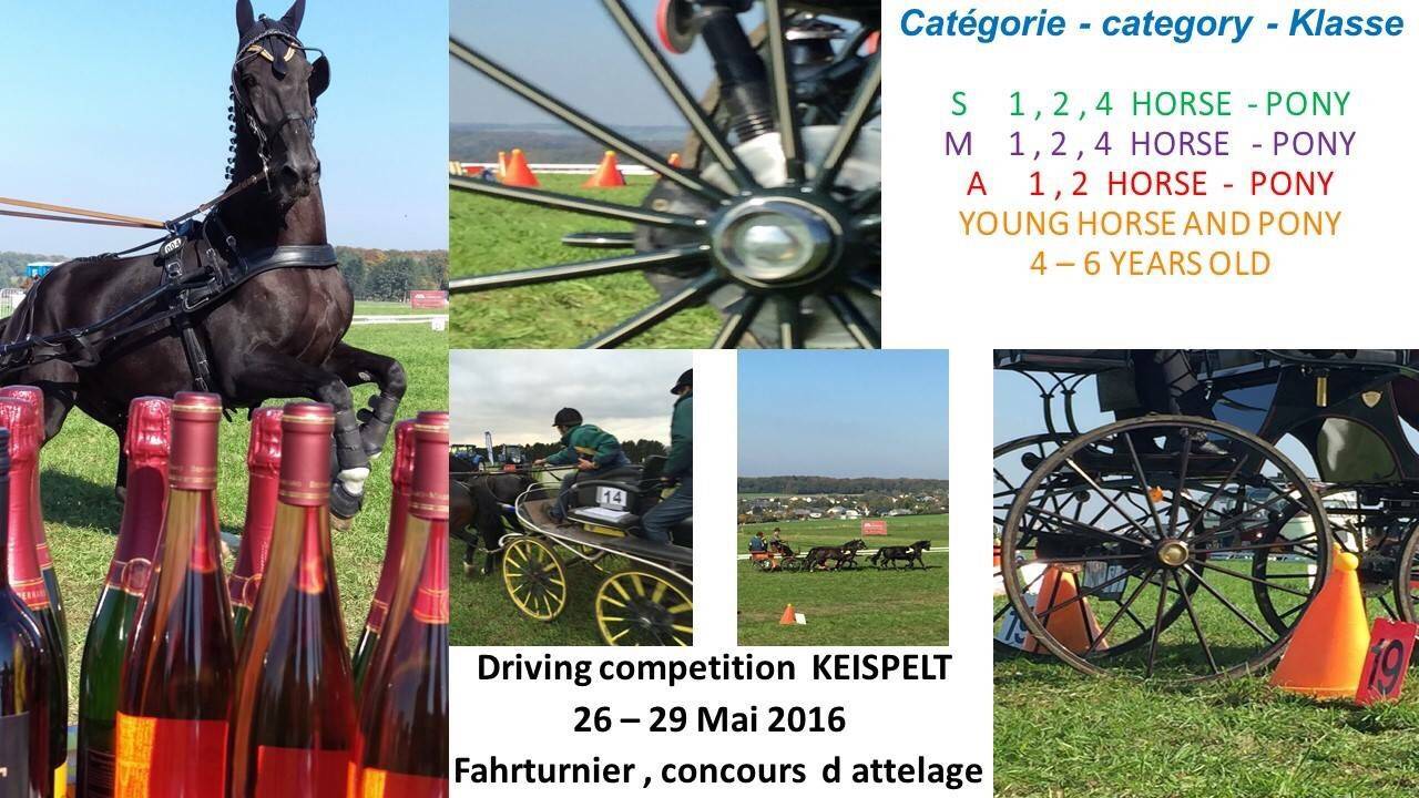 Van 27 tot en met 29 mei organiseert de Luxemburgse menvereniging een nationale wedstrijd in Keispelt, waarvoor Nederlandse menners van harte worden uitgenodigd deel te nemen. De organisatie biedt de deelnemers én hun grooms op donderdagavond eten en drinken aan! De eerste 10 Nederlandse menners die zich inschrijven ontvangen bovendien een mooie fles Luxemburgse wijn!De wedstrijd is opengesteld voor alle rubrieken, inclusief jonge paarden. Het jurycorps bestaat uit Pierre Cazas (FRA), Paul Assmann (GER) en Henk van Amerongen.