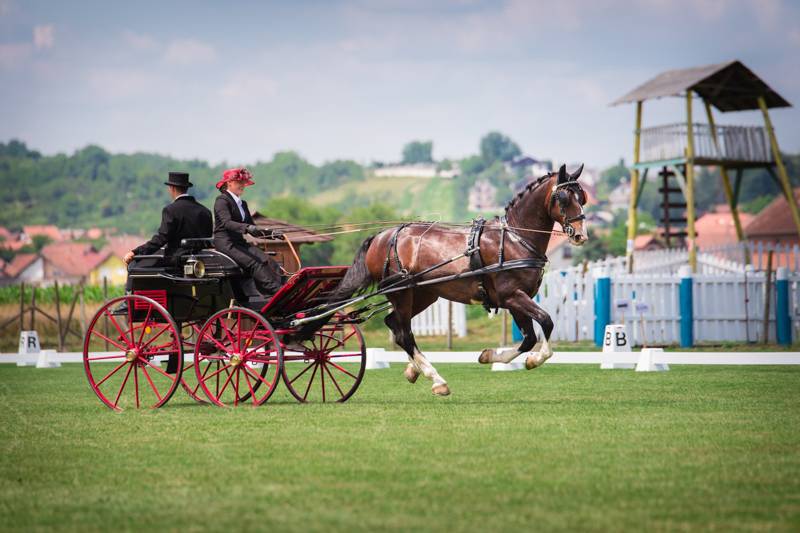 The international driving competition in Pleternica, Croatia started yesterday with dressage where the Slovenian Champion, Miha Tavcar set the winning score of 49,97 penalty points in the horse pairs class. He stayed ahead of Hungarian drivers Viktor Szabó and István Szécsi. Estonian single driver Pille-Riin Roosileht was the best in her class followed by József Farkas (HUN). Susanne Prietl (AUT) won the dressage in the 1* Single Horse class.