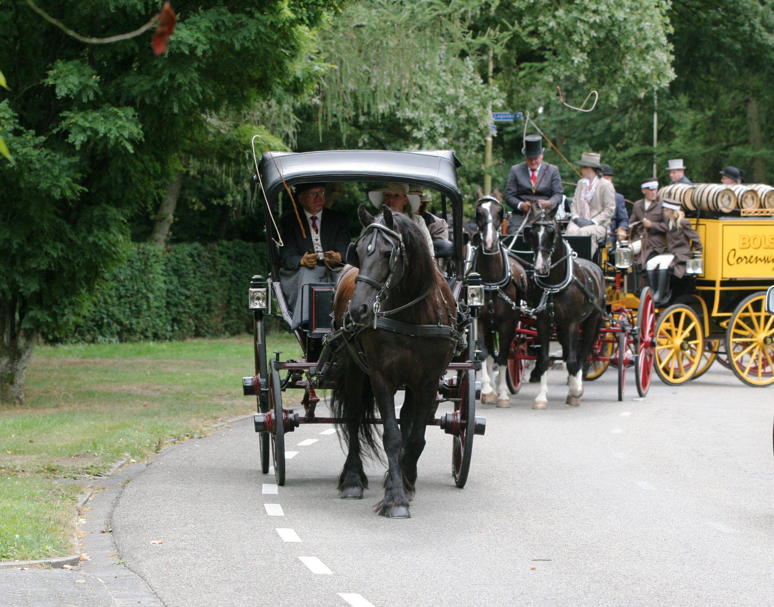 De rijtuigen vertrekken om 10.30 uur vanaf het inspanterrein, gelegen aan de Franse Kampweg 38 in Bussum (Hocras). De route voert dit jaar op verzoek van velen langs de fraaie buitenplaatsen in ’s Graveland. Rond 11.45 uur is het tijd voor de eerste stop in Ankeveen.