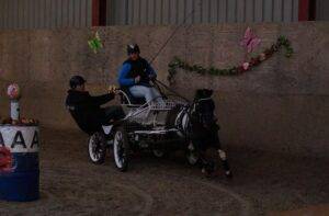 In Roden werd gisteren de tweede wedstrijd om de Noordercup verreden; de minimarathon-competitie van Mendistrict Noord, die in samenwerking met verschillende verenigingen en stichtingen georganiseerd wordt.'s Middags kwamen de enkelspan pony's aan de start en met twaalf aanspanningen was dit een goed gevulde rubriek. In de twee manches waren Harmen van de Werf, Xander Tuitjer en Charity Melissa Frinsel aan elkaar gewaagd. In de finale maakte Harmen een fout in de hindernis en had Xander een miscommunicatie met zijn pony, zodat Charity met haar fanatieke Welsh x Hackney deze rubriek op haar naam schreef.