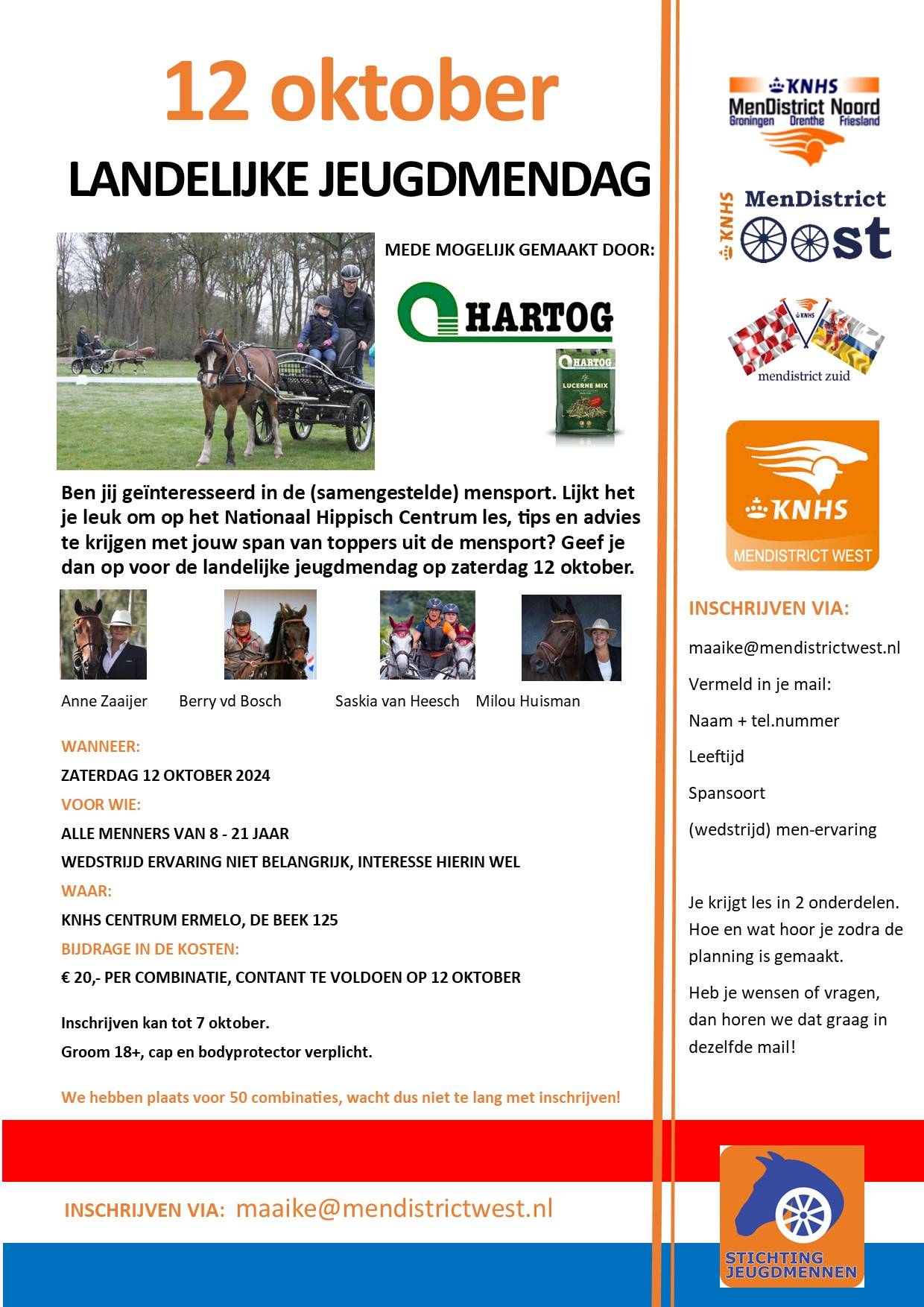 Vorige week berichtte Hoefnet dat er dit jaar, op 12 oktober, weer een Jeugdmendag georganiseerd wordt. Er zijn al heel wat inschrijvingen voor deze leerzame en gezellige dag in Ermelo, maar als het vol is ... is het ook écht vol.