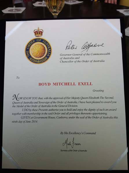 Order of Australia Medal for Boyd Exell