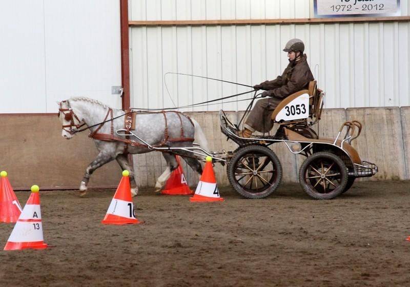 “Jim kwam in oktober 2014 bij mij. Ik reed toen met twee vosjes en wilde graag de overstap maken naar de klasse 3”, vertelt Melanie. “De pony’s die ik reed waren enthousiast en heel goed in de marathon, maar de dressuur moest beter. Ik zocht er daarom een pony bij die rust en stabiliteit in het span bracht en die de dressuur zou kunnen opkrikken. Via via kwam ik bij Jim terecht. Hij was toen 5 jaar oud, was beleerd en de basis zat erop. Hij had weinig ervaring maar liet zich netjes sturen en zijn karakter was precies wat ik zocht.”