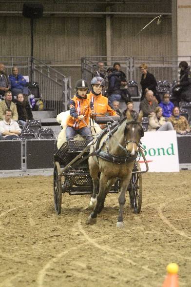 De kinderen vormden samen met hun ouder een team en de toekomstige kampioenen waren behoorlijk aan elkaar gewaagd. De 12-jarige Bas Monhemius stuurde zijn tweespan pony's zeer fanatiek en snel door het parcours, wat hem samen met zijn vader Ton, die vandaag zijn 59ste verjaardag vierde, uiteindelijk de eindzege opleverde.