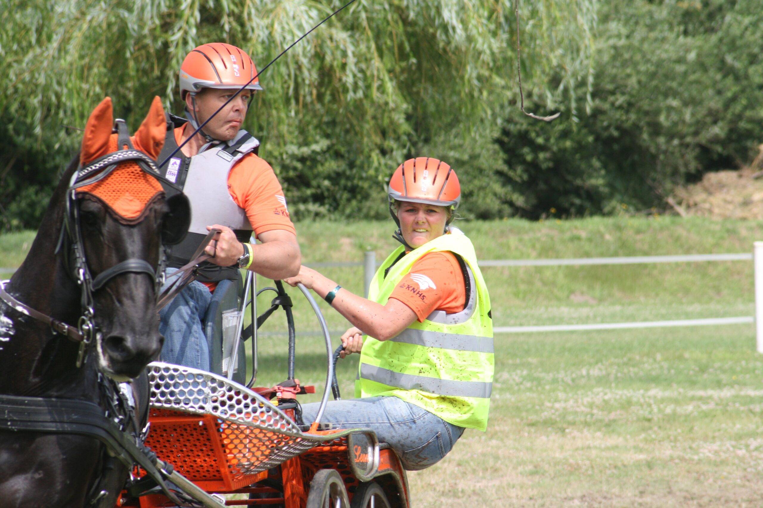 “Ik kreeg ineens een black out,” vertelt Poppen. “Ik was onderweg naar poort nummer vier toen ik in een keer dacht dat ik de marathonhindernis in moest. Ik keerde gelijk om, maar mijn groom hing natuurlijk nog aan de goede kant.” Poppen kon er gelukkig achteraf wel om lachen: “Het is pas de tweede keer dat me dit overkomt. Ik had de snelsluiting van mijn gordel op mijn nieuwe koets nog niet uitgetest en dat is mijn eigen fout. Maar beter dat het hier gebeurt dan op het WK in Breda in september.”