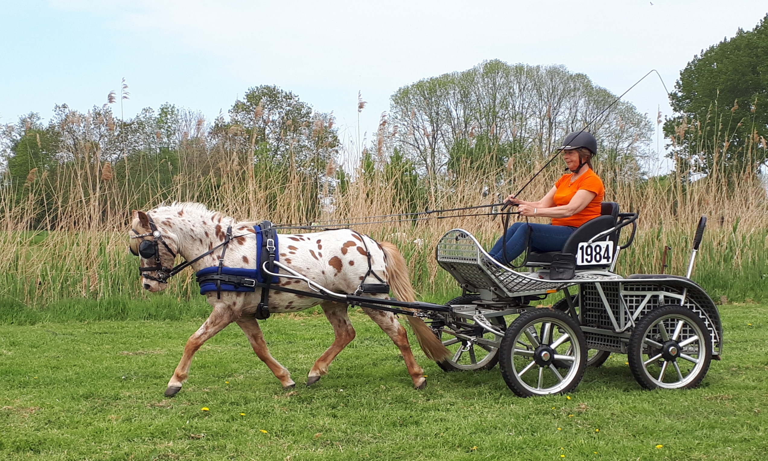 ‘Ik reed altijd met grote Appaloosa paarden onder het zadel. We hebben een eigen Appaloosa-fokkerij,’ vertelt ze. ‘Twaalf jaar geleden heb ik bij een val van het paard een rugwervel gebroken. Na de revalidatie kon ik niet meer rijden.’ Twinkie liep al rond bij de familie Haverhoek en een kennis beleerde de pony voor de wagen en zo begon het… ‘Ik vond mennen eerst eigenlijk maar stom. Maar er kwam een karretje en het was wel leuk dat ik met mijn man en de kinderen een ritje kon maken.’ Het smaakte naar meer. Yvonne werd lid van de menvereniging in Hoofddorp en ging daar lessen. Vervolgens kwam Vanity erbij en ging ze tweespan rijden. Het was de aanloop naar veel successen en veel plezier.