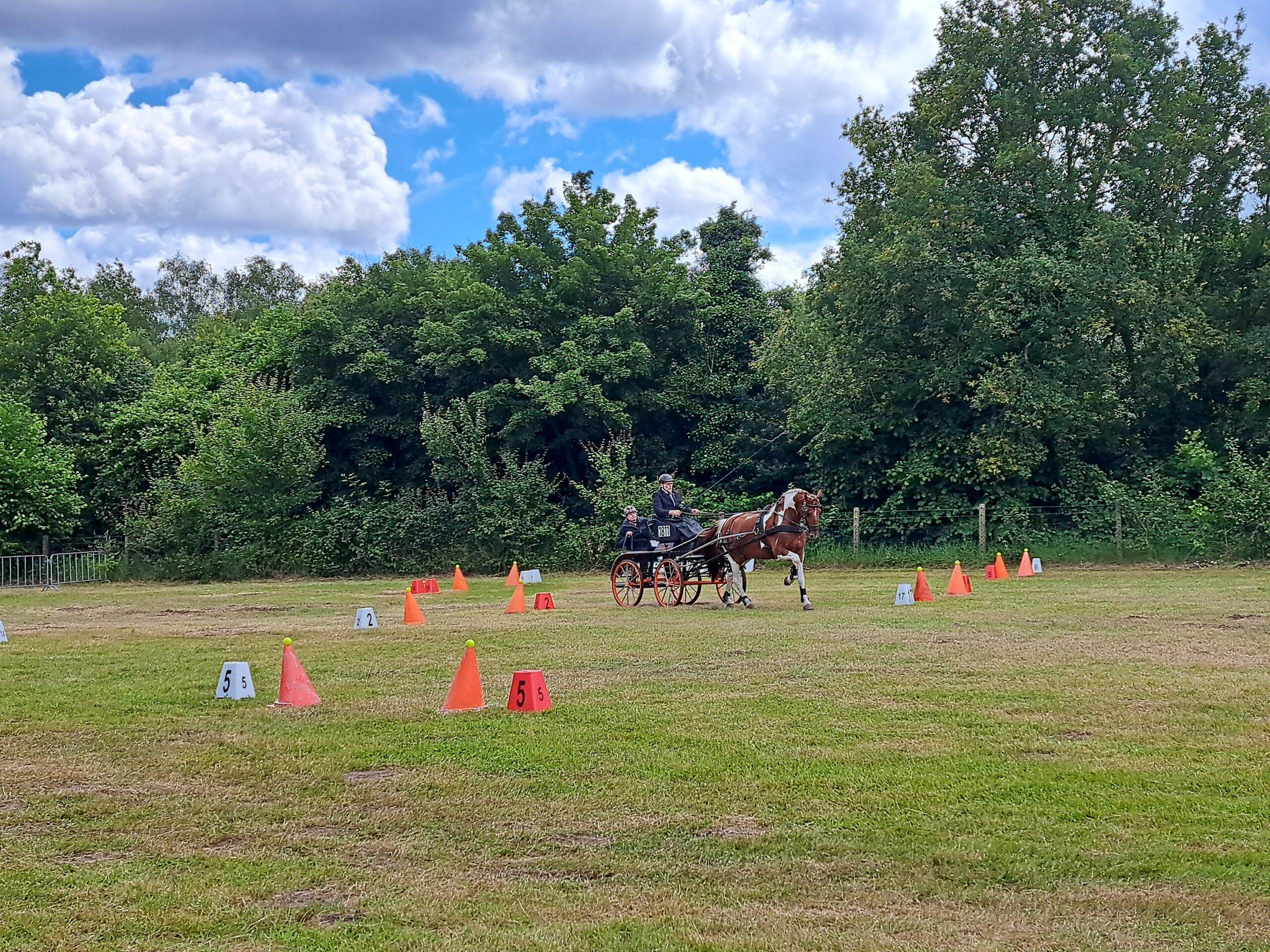 En het bleef op zaterdag de hele dag droog. Het dressuurterrein had geleden onder de nattigheid en enkele gravende mollen, maar was goed droog. De vaardigheid, die normaal plaatsvindt op de gedraineerde zandpiste van Manege Meulendijks, was verplaatst naar het marathonveld en ook dat terrein, waar morgen het B-traject van de marathon overheen gaat, heeft zich heel goed gehouden. Op het parkeerterrein van de ‘heen-en-weer’ – rijders stond een tractor klaar om de vrachtwagens en zware autocombinaties van het parkeerterrein te helpen, zonder dat er eerst diepe slipsporen in de grond gereden werden en de wagens verder in de zachte bodem zakten.