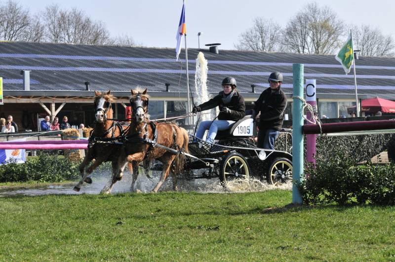 Het terrein aan de Halvinkhuizerweg ligt er met zeven hindernissen strak bij en zoals elk jaar is er ook nu weer een geheel nieuwe hindernis. Elke rubriek is goed gevuld met enkelspannen, tweespannen, tandems en vierspannen paarden en pony’s.