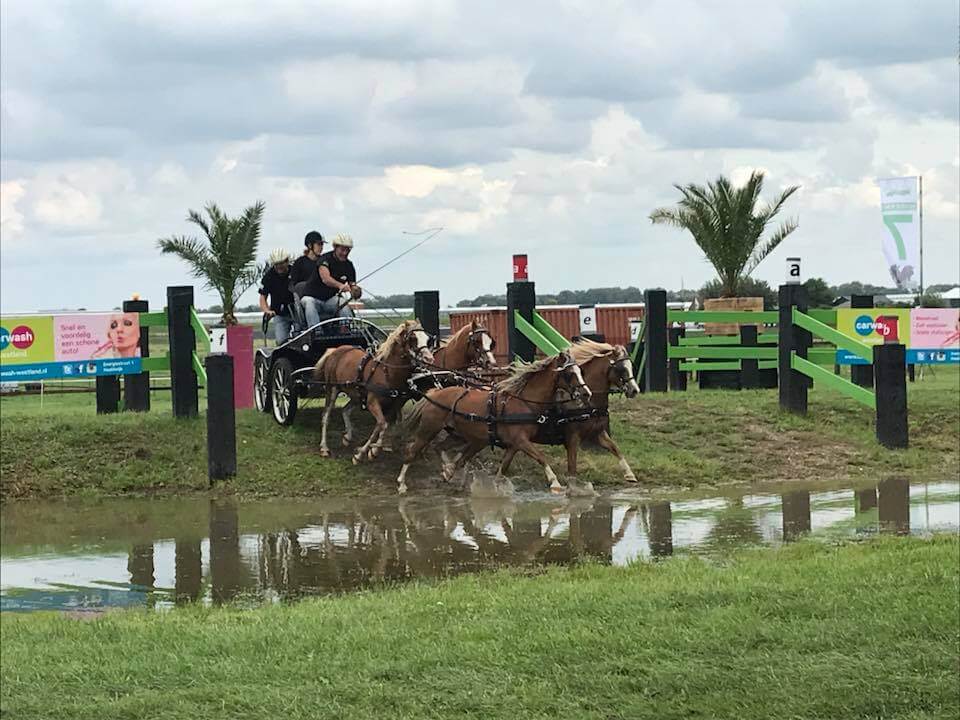 De vierspanrubriek bij de paarden was goed gevuld met zes deelnemers. Zevende deelnemer Koos de Ronde gebruikte de entourage in Maasdijk als oefenwedstrijd. Met zijn vossen reed hij dressuur en met zijn indoorspan de volgende dag de marathon.