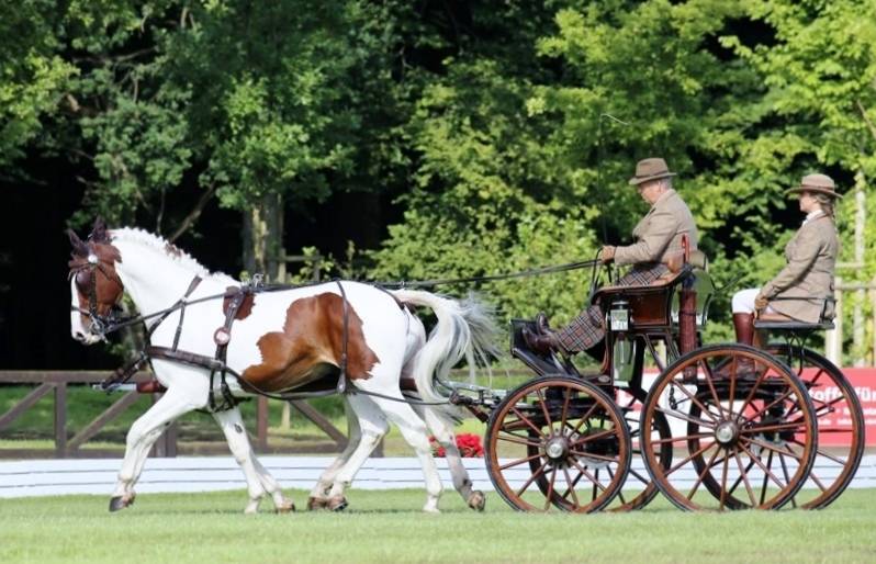 So kann es weitergehen: In den beiden Nationenpreisen in Riesenbeck führen nach der Dressur bei den Zweispännerfahrern Deutschland (92,85) vor Frankreich (99,99) und den Österreichern (101,29) und bei den Vierspännerfahrern die Niederlande (99,28) vor Deutschland (101,47) und Belgien (103,71). Die Ergebnisse sind hauchdünn und versprechen weiterhin Hochspannung. Denn noch stehen unter der Surenburg der Höhepunkt des Turniers am morgigen Samstag, die Marathonfahrt durch den Wald (Beginn 8 Uhr), und am Sonntag das Hindernisfahren an. „Das gibt ein ganz großes Sportfest am Wochenende“, freut sich der erste Vorsitzende des ausrichtenden Reitervereins Riesenbeck, Philipp Freiherr von Heereman. In der Einzelwertung rettete der italienische Fahrer Claudio Fumagalli (38,34) seine Führung bei den Zweispännerfahrern vor den beiden Deutschen Marco Freund (38,87) und Sebastian Warneck (44,60). Die Vierspännerfahrer werden wie so oft dominiert von Boyd Exell (Australien, 37,10) und Chester Weber (USA, 42,94) und dem Belgier Felix Brasseur (45,54)..jpg)