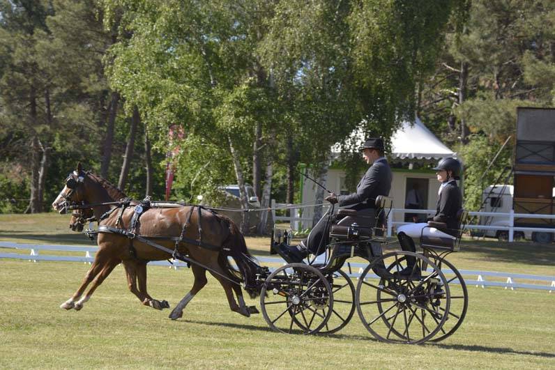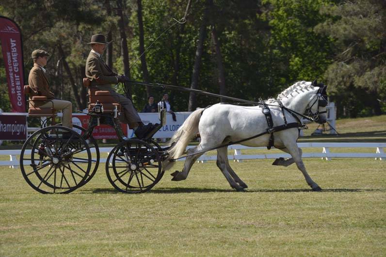 Nadat vanmorgen alle deelnemende paarden en pony’s in Saumur aan de veterinaire keuring deelnamen, startte het programma vanmiddag al met de dressuur voor de enkel-en tweespan pony’s. Bij de tweespannen ging Wolter van der Veen lange tijd aan de leiding. Zijn mooie prestatie werd echter overtroffen door Rodinde Rutjens, die met haar tweespan ruim twee punten beter scoorde. Laatste starter Olivier Thiriez verwees Van der Veen naar de derde plaats.