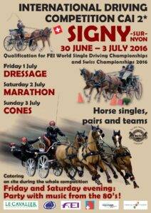 Bei nochmals schönen und ziemlich warmen Wetter (28 Grad) standen heute in Signy die Dressuren der Einspänner und diejenigen der nationalen Fahrer auf dem Programm.