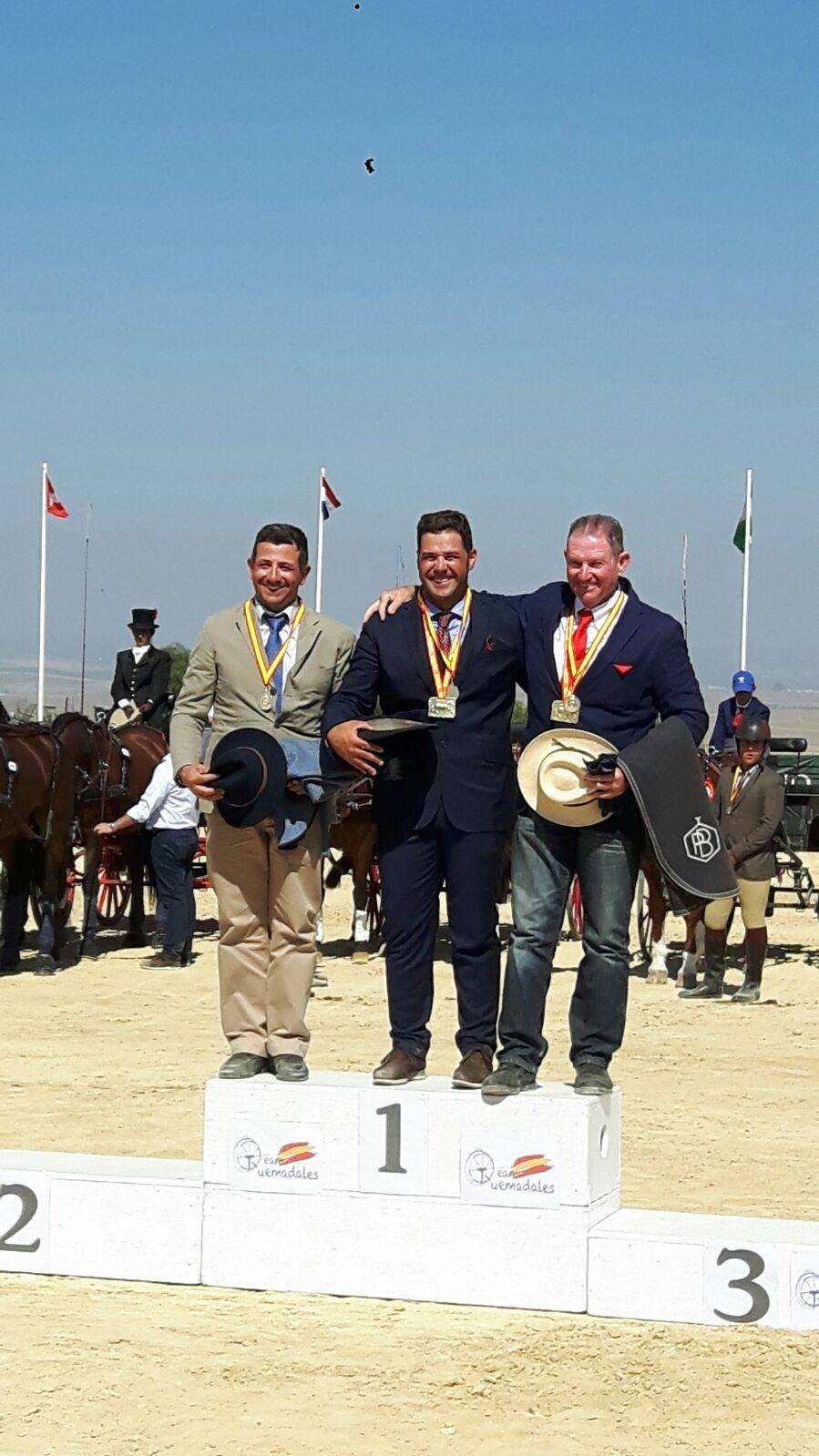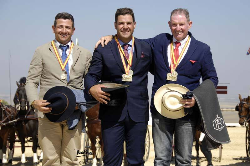 Host Miguel Gutierrez won the dressage and was heading for gold after his fourth place in the marathon, but he knocked one ball down too many in the cones which allowed Francisco Ballester to be crowned as Spanish Champion in the pairs class. Daniel Gutierrez won the bronze.