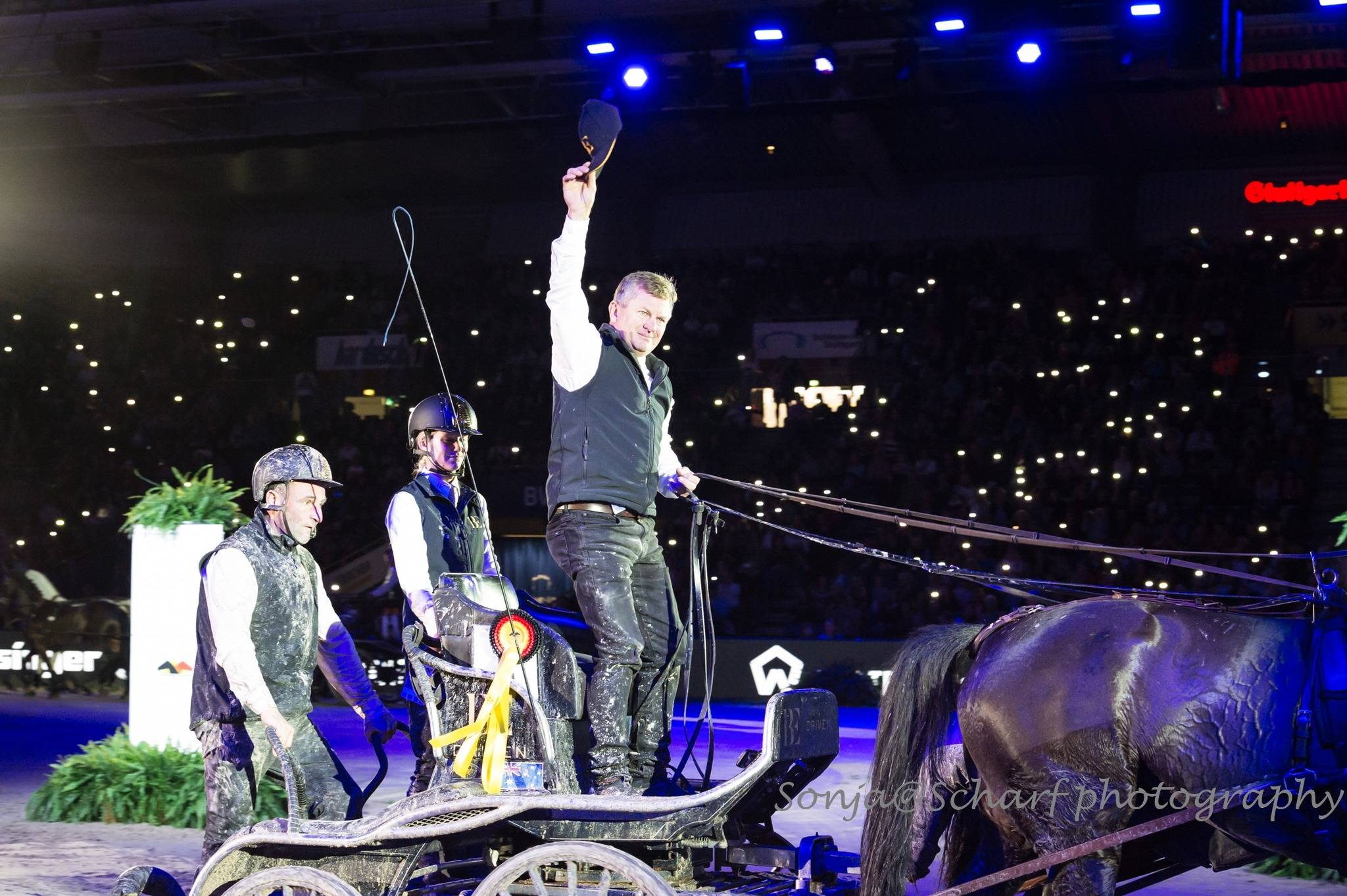 De sfeer was geweldig in de grote Hanns-Martin-Schleyer Halle. Eerste deelnemer Michael Brauchle ging meteen als een raket van start. Hij nam heel slim even tijd in hindernis 9 en finishte foutloos onder de 160 seconden. Mareike Harm had 2 foutjes en vervolgens was Jérôme Voutaz aan de beurt. Hij had zijn span beter aan het lopen dan gisteren en bleef dichter bij het hout. Zijn tijd was sneller dan die van Brauchle, maar 2 afgeworpen ballen hielden hem uit de drive-off. IJsbrand Chardon en Koos de Ronde reden vervolgens beiden briljante rondjes en waren sneller dan Brauchle. Met 150,91 sloeg Koos de Ronde een flink gat. Boyd Exell was op dreef, maar niet zo snel als Koos de Ronde. Hij maakte het helemaal spannend door een bal af te rijden op de naast de waterbak gelegen poort 11. Maar met 155,03 als eindtijd reed hij zich toch in de drive-off, ten koste van Michael Brauchle.