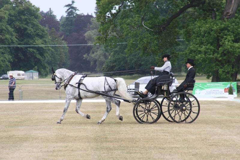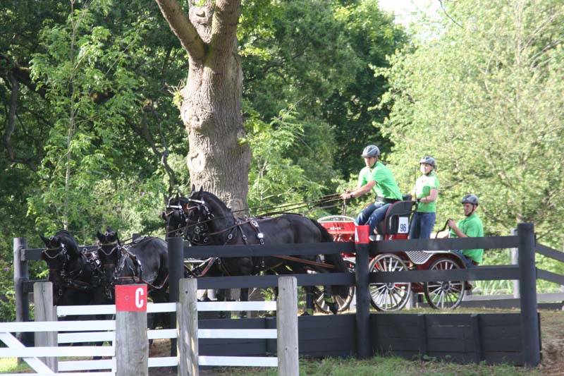 The largest field at Sandringham for some years was augmented by the French, Belgian, Australian and Irish drivers taking part in the FEI (advanced) classes which began the event with dressage on Thursday afternoon. Their marathon was on Saturday and their cones competition was on Sunday.Dressage was judged by Diana Brownlie (GBR), Martha Hanks-Nicoll (USA) and Boots Wright (USA). The course designer was Barry Hunter and the venerable post and rails obstacles were flagged as sympathetically as they could be, number seven in particular being extremely tight and suiting singles and technical drivers best.
