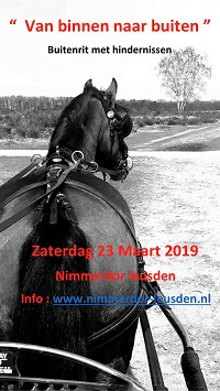 De overgang van het indoorseizoen naar buiten wordt door Nimmerdor in Leusden aangegrepen voor een gezellig evenement voor recreatiemenners en wedstrijdmenners.Op zaterdag 23 maart 2019 vindt daar de menwedstrijd ‘Van Binnen naar Buiten’ plaats. Vertrekbasis is manege Nimmerdor, Kerkweg 3 in Leusden. De deelnemers kunnen die dag een prachtige route door natuurgebied De Treek rijden. Het wordt letterlijk van binnen naar buiten, want er worden ook in- en outdoor hindernissen gereden. Drie hindernissen zijn binnen in de grote accommodatie van manege Nimmerdor gebouwd en drie hindernissen zijn buiten in het bos gesitueerd.