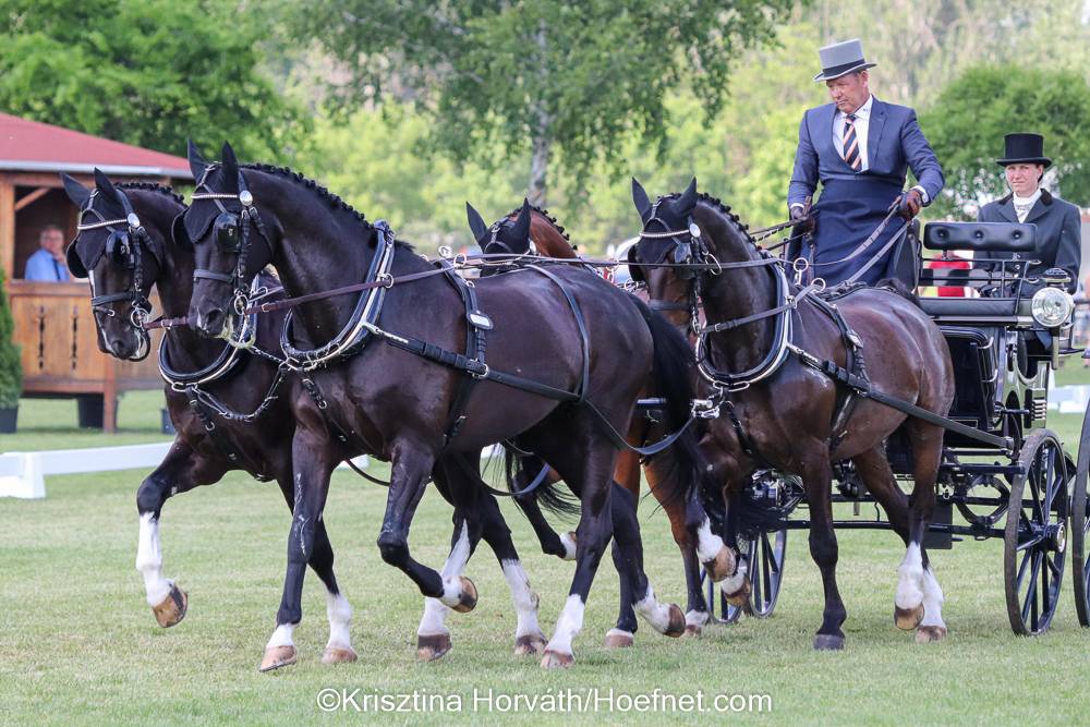 In het Hongaarse Vecsés heeft IJsbrand Chardon de wedstrijd bij de vierspannen gewonnen. Hij maakte het op de laatste wedstrijddag extra spannend door op de één na laatste poort in de vaardigheidsproef een balletje af te rijden, nadat Bram foutloos was gebleven. Maar het was net genoeg en Chardon sr. schreef de wedstrijd met slechts 0,19 strafpunt voorsprong op zijn naam.