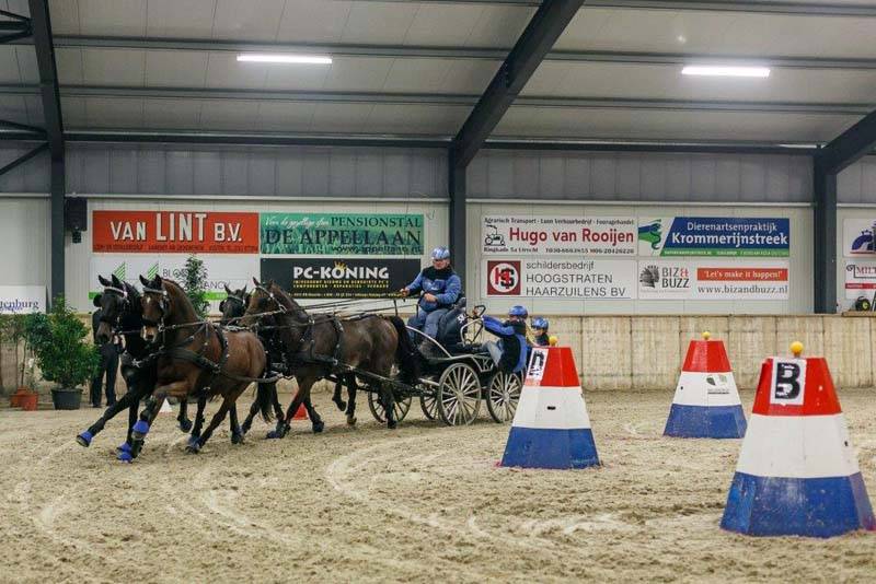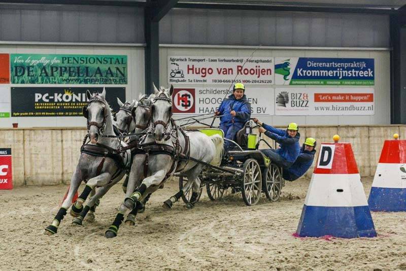 Op 10 en 11 oktober vond onder toeziend oog van een groot aantal toeschouwers de minimarathon plaats van de Voornruiters in de grote rijhal van het RABO Hippisch Centrum in Utrecht-de Meern. Vierspanrijder Theo Timmerman was op zaterdagavond rechtstreeks vanuit Assen naar Utrecht gereden om laat op de avond de prachtige wedstrijd met een mooie groep vierspannen af te sluiten. Een prachtig slotspektakel met speaker IJsbrand Chardon, die ook uit Assen kwam. Als snelste rijder bleef Theo met zijn Lipizzaner paarden ook na de 2e manche aan de leiding met een indrukwekkend gereden parcours.