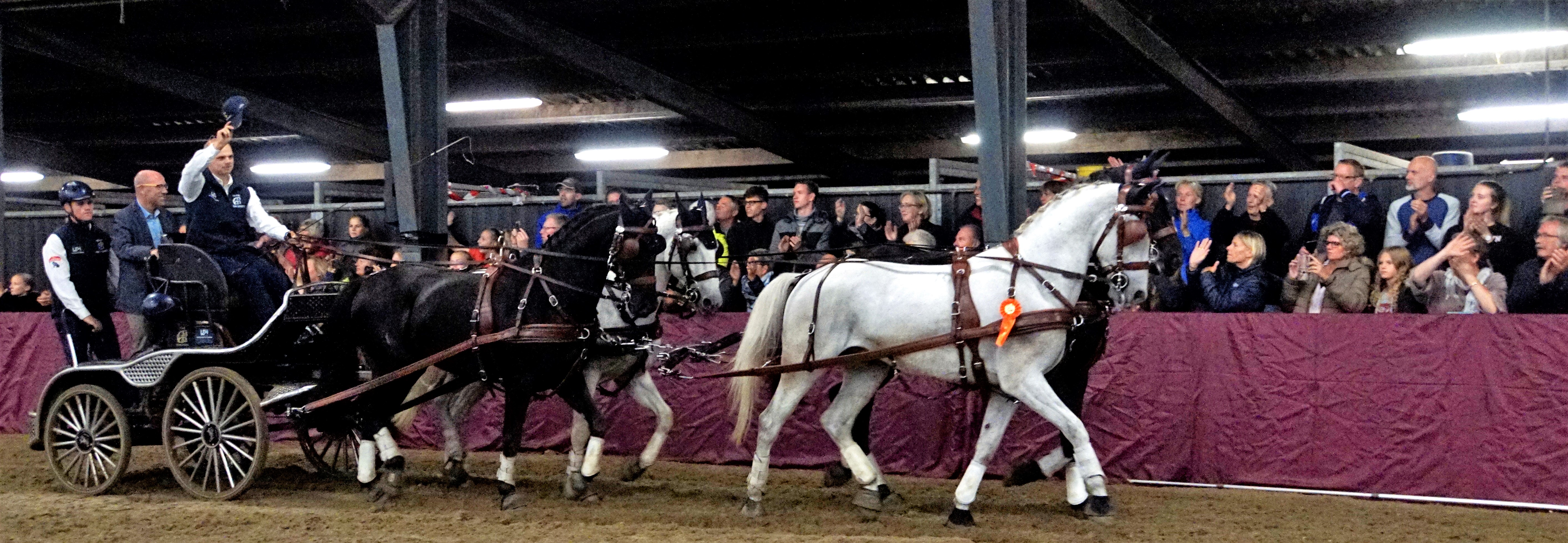 Onze wedstrijd is een unieke kans om in Nederland de beste vierspannen van de wereld te zien, maar is natuurlijk ook een leuk opwarmertje voor de Wereldbeker-wedstrijd van de JIM, die van 8 tot 10 november in Maastricht plaatsvindt,” aldus gastheer Koos de Ronde, die op dit moment op een tweede plaats staat op de wereldranglijst.