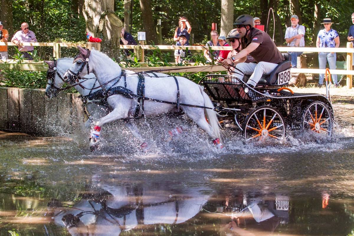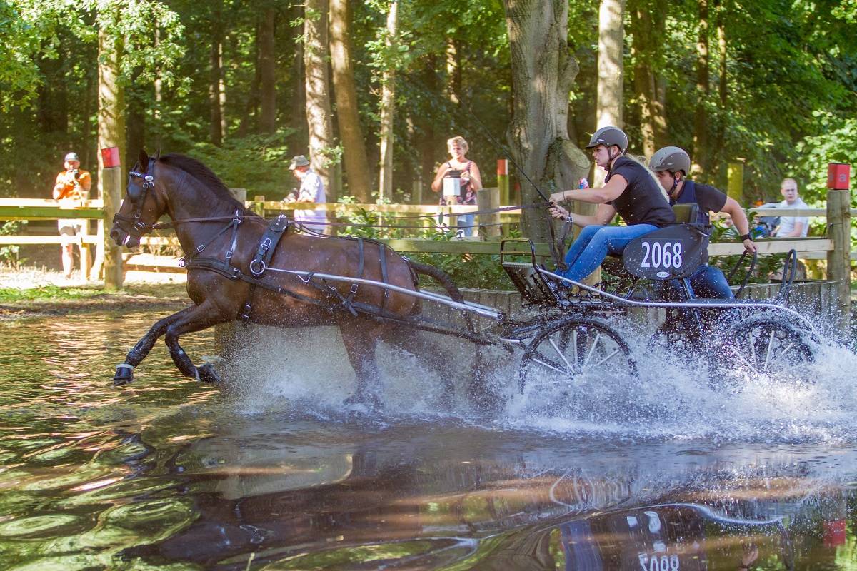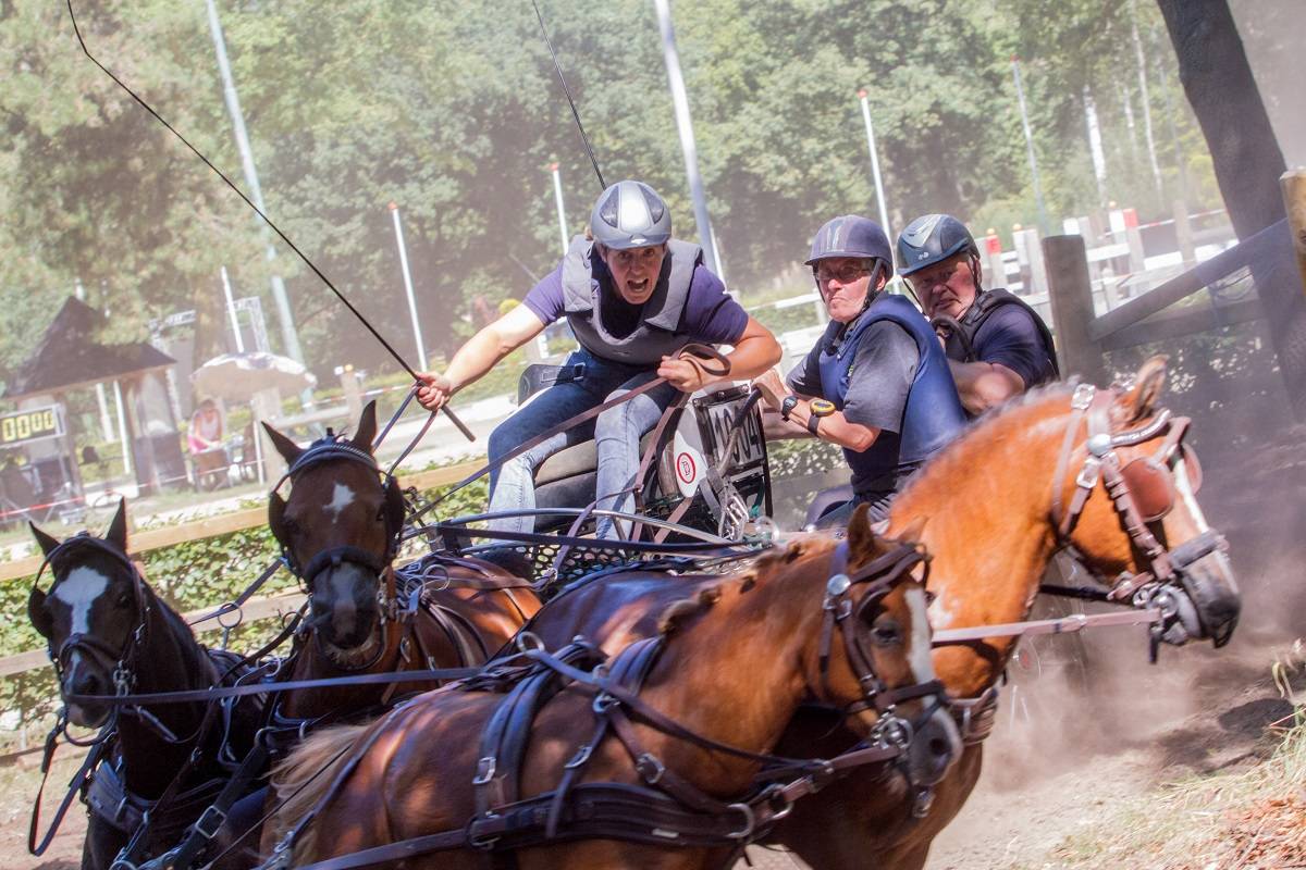 Na die superieure marathon stond ze gisteren weer op kop, maar de vaardigheid was pittig. “Ik zag hoe het ging bij de enkel- en tweespannen en dacht ‘we gaan die tijd nooit redden’. Saskia Siebers reed bij de enkelspan paarden heel kort en dat leek de beste tactiek. Toen ik reed liep de klok niet mee, dus ik kon tussendoor niet kijken of ik snel genoeg was. Ik heb dus maar zo vlot mogelijk gereden en we finishten ruim binnen de tijd.”