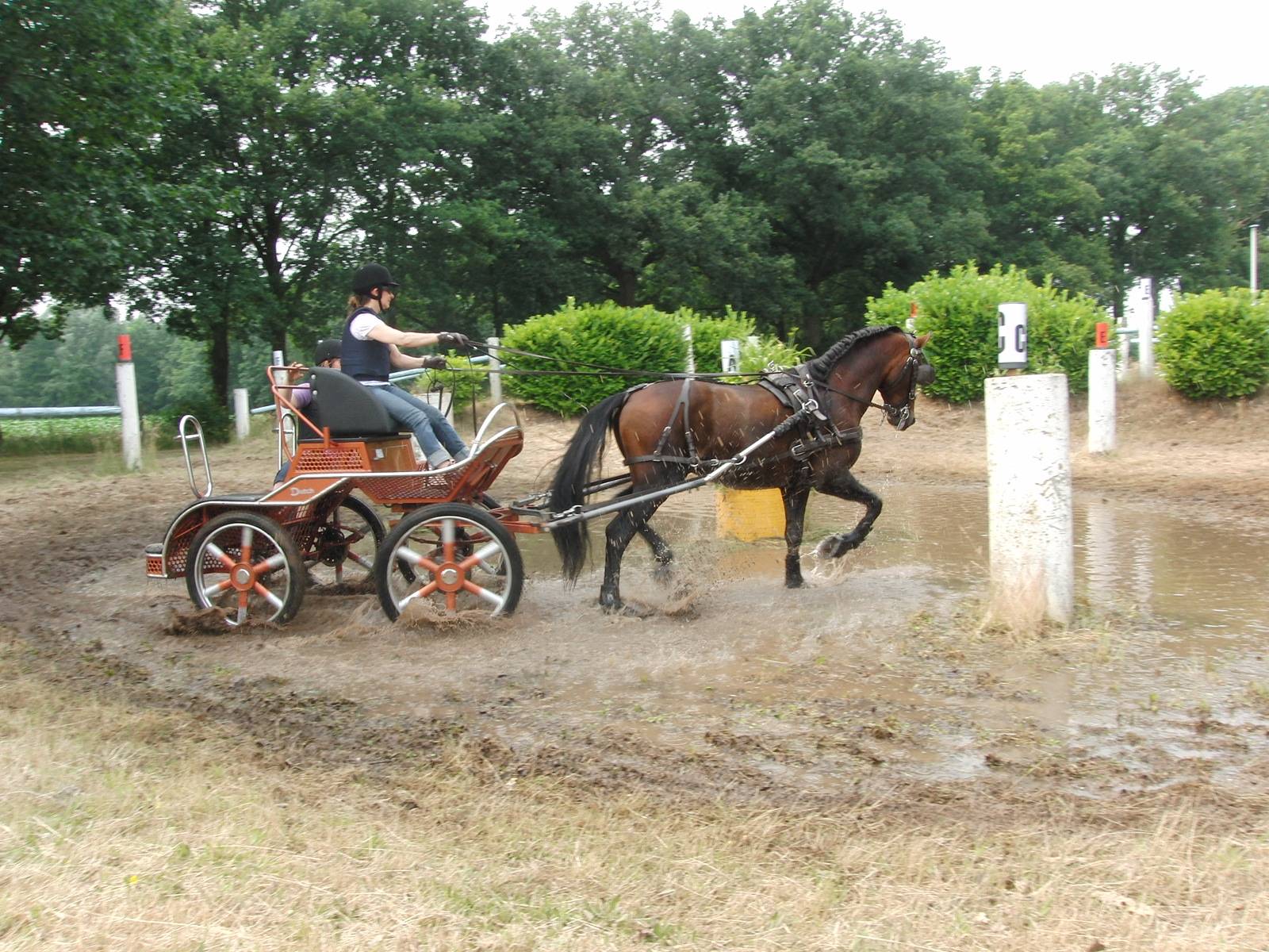 Leonne van Gestel en Jan de Boer gaven een korte, maar fijne dressuurles op een grote, vlakliggende wei. Gerard Leijten leerde de combinaties de fijne kneepjes van de vaardigheid en Wilbrord van den Broek, Frank van der Vegt en Berry van den Bosch haalden het beste in de menners naar boven in de drie uitgekozen hindernissen, waaronder een waterbak.